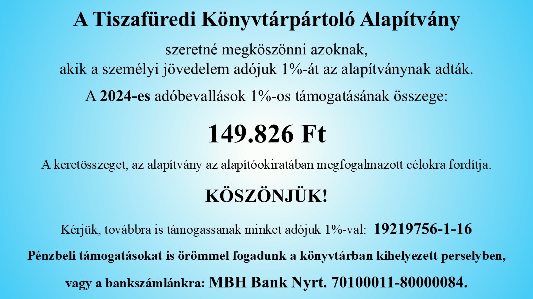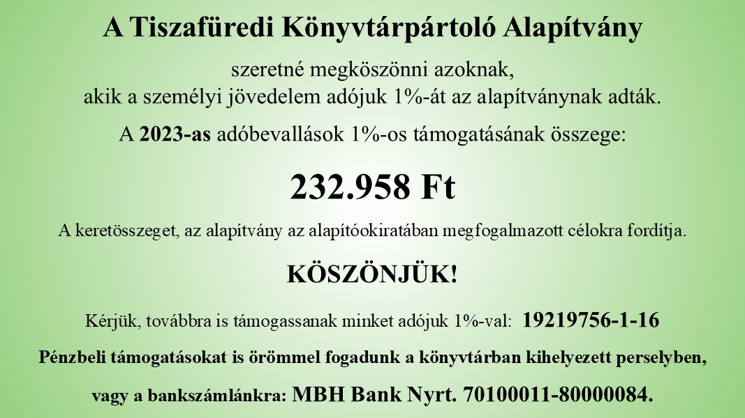 Tiszafüredi Könyvtárpártoló Alapítvány Hívogató!